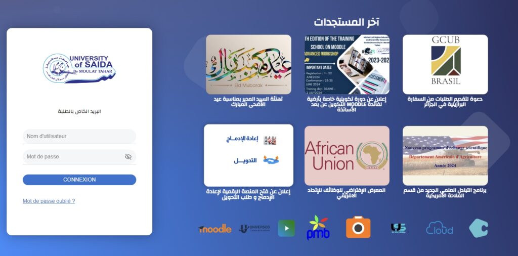 Carbonio Saida is an email service created by the University of Saida, providing each student with a unique university email account. It facilitates the receipt of news, academic links, and other important information. This service ensures students stay informed about university updates and academic matters.